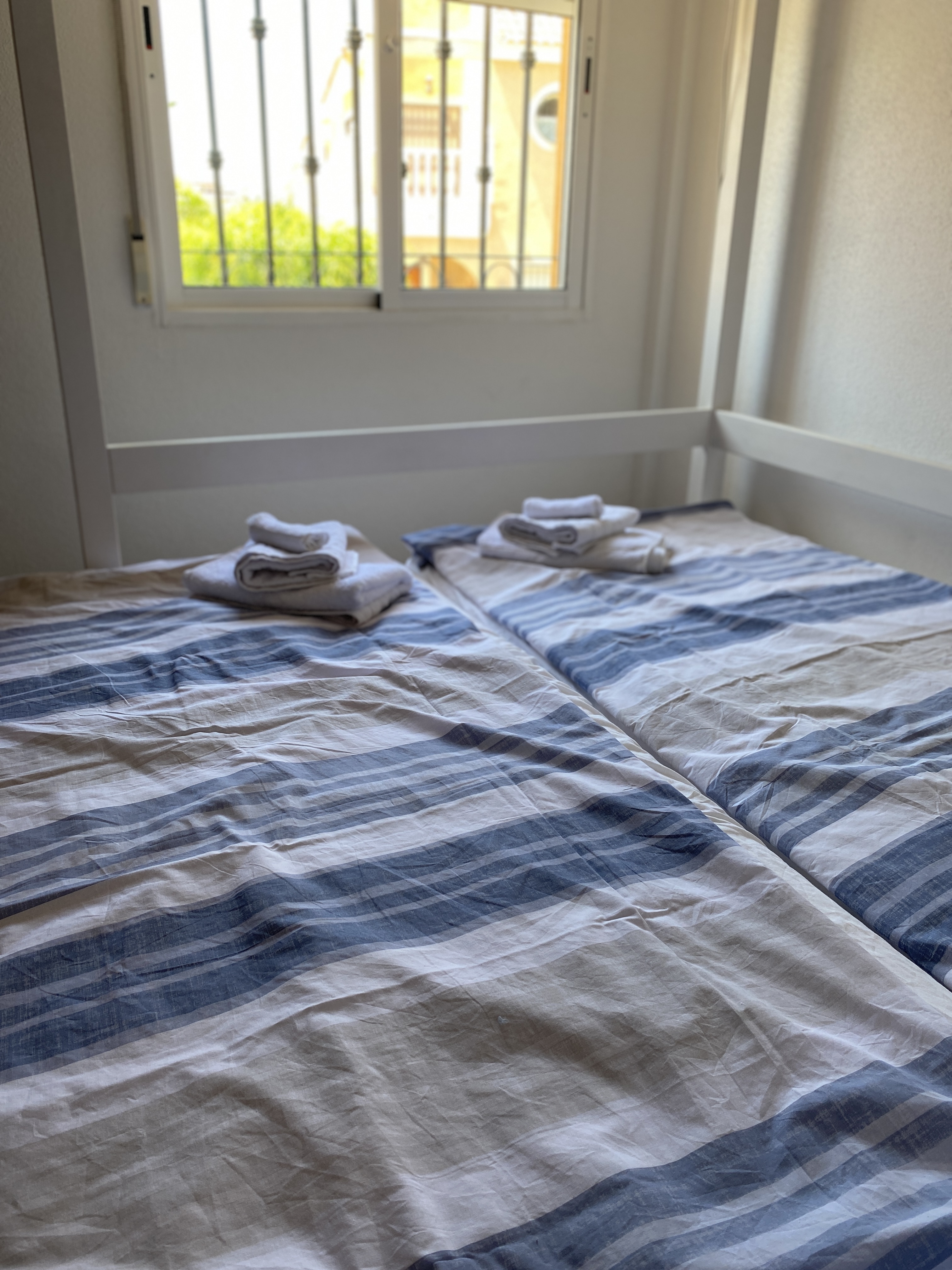 Casa Jogusek house is set in the heart of La Zenia and Cabo Roig, on the beautiful community of Zenia Golf 4. It is only a 3-minute walk to the center of Cabo Roig with all the bars and restaurants opened all year long. In 10 minutes walk you will reach the Blue Flag award winning beach of Cabo Roig (La Caleta). Our house is located in closed and quiet community with two private swimming pools (one of them is straight in front of house entrance). Casa Jogusek is fitted with 2 bedrooms and two terraces (smaller in front of the pool and larger at the back of the property).